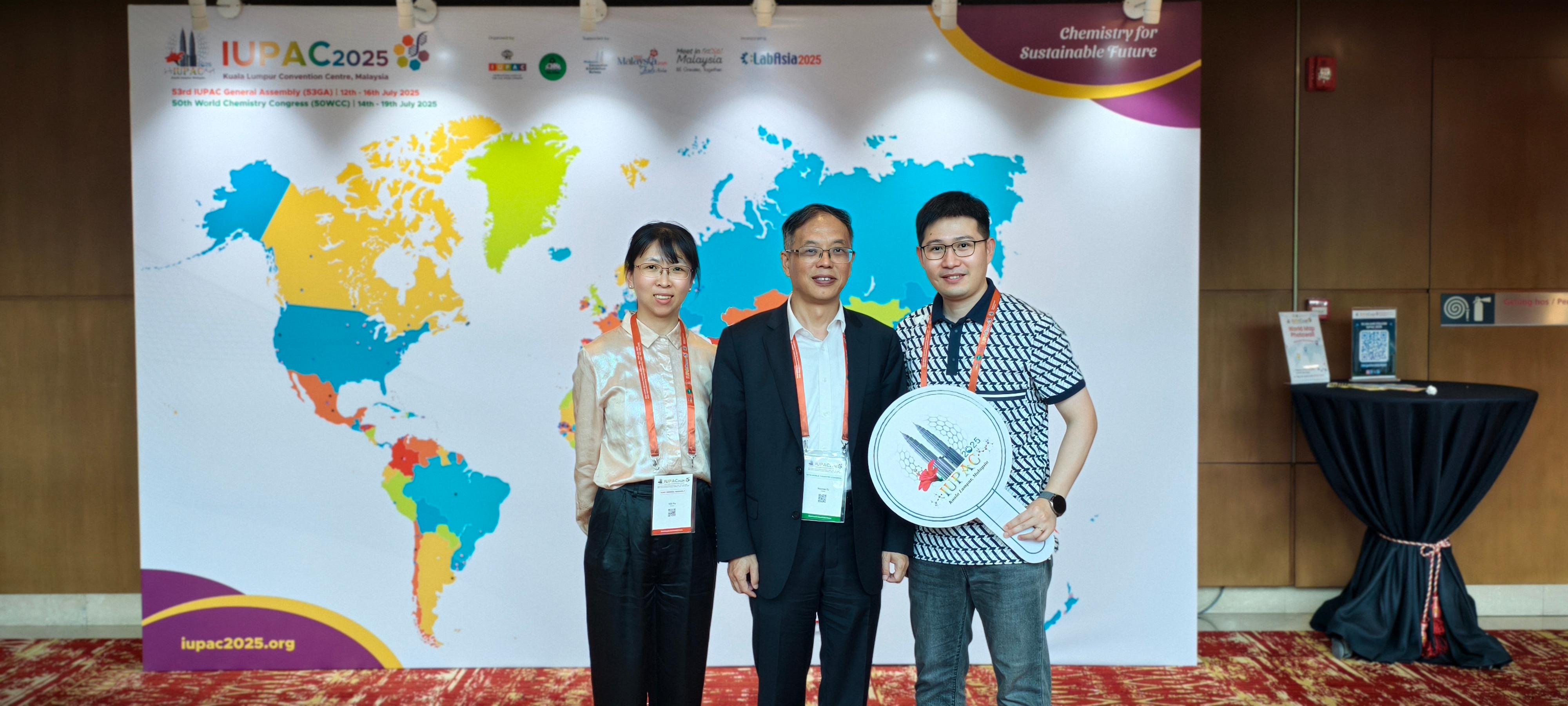 From July 12 to 19, the 53rd IUPAC General Assembly & the 50th World Chemistry Congress took place in Kuala Lumpur, Malaysia, under the theme “Chemistry for a Sustainable Future”. Mr. Li Haoran, Honorary Dean of the NHU Research Institute, Ms. Yu Lili, Assistant Dean and Deputy Director of the Product R&D Department, and Mr. He Qiyang, Deputy Director of the Science and Technology Cooperation Department, joined over 3,000 chemists from around the world to explore the vital role of chemical science in addressing global sustainability challenges.